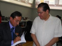 En la mesa el Mtro. Saravia Tasayco, estuvo acompañado del Lic. Carlos Sánchez Pavón de la Secretaría de Desarrollo Económico del Gobierno del Estado de México, quien fungió como moderador, y el Mtro. Héctor Ruíz Ramírez, Coordinador de Posgrado de la Universidad del Valle de Toluca, quien fue el comentarista de la obra. Al final el autor intercambio con otros académicos y alumnos sus impresiones y autógrafos.