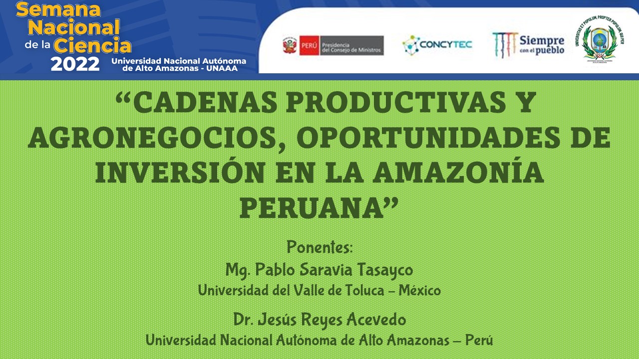 Analizar una cadena productiva se constituye en una herramienta importante para conocer la competitividad y la generación de oportunidades de negocios a detonar en cada uno de los eslabones. Asimismo, permite conocer las actividades criticas y los actores claves para generar valor y competir en los mercados, dando respuesta a las necesidades de una localidad, una región, un país o a nivel global. Sobre estos temas versó la conferencia que impartí conjuntamente con el Dr. Jesús Reyes Acevedo, docente de la Universidad Nacional Autónoma de Alto Amazonas (UNAAA), en la semana nacional de la ciencia 2022.
